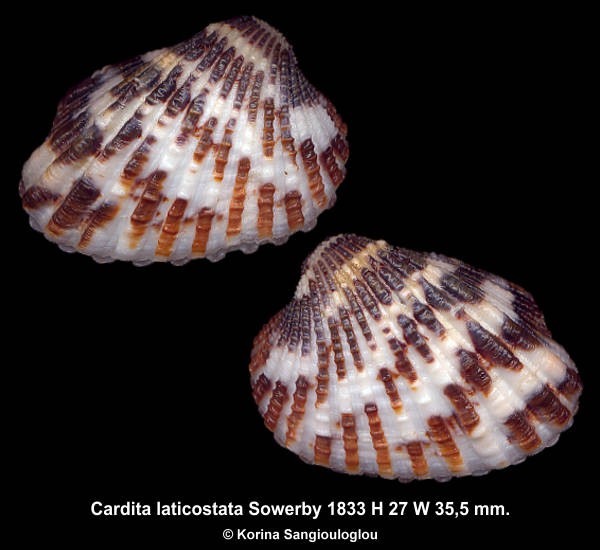 Cardita laticostata Sowerby 1833 Gorgeous Brick/Blackish!