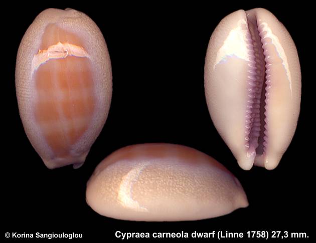 Cypraea carneola dwarf (Linne 1758) Gorgeous Blue Ring!