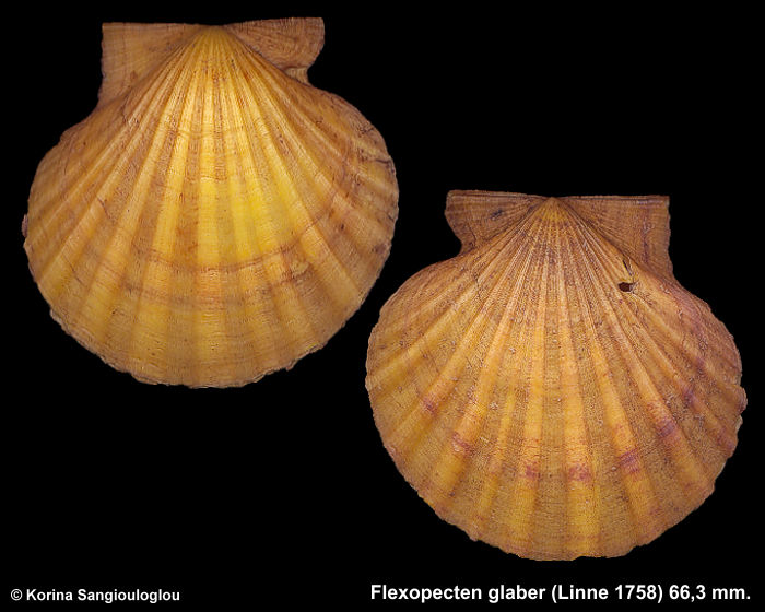 Flexopecten glaber (Linne 1758) Outstanding Extra large Yellow!