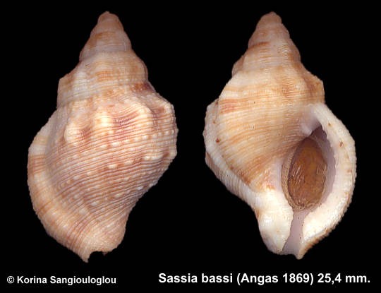 F+++/Gem W/O 25,4 mm. Very beautiful. Pale yellowish, cream and white color with beige, brown spiral marks, attractive knobby and fine nodulose cords. White aperture and lip with teeth and few beige marks. Taken among grass roots at 100 m. Port Welshpool, Victoria, Australia 1970's